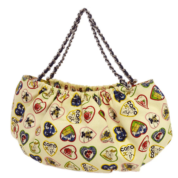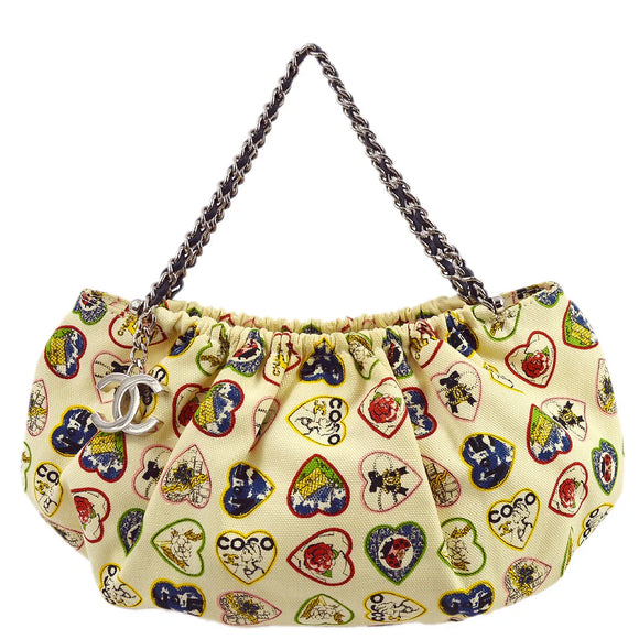 Chanel 2005-2006 White Canvas Valentine Chain Handbag