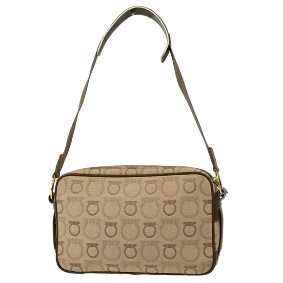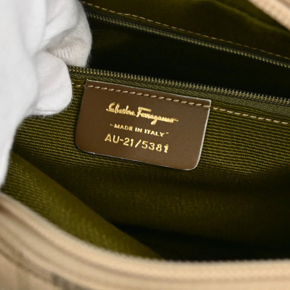 Salvatore Ferragamo Beige Canvas Shoulder Bag