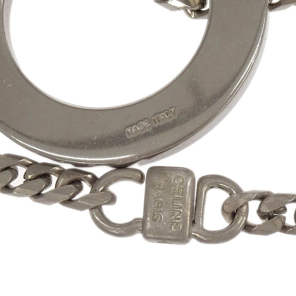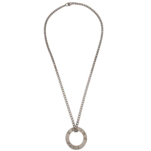 Celine Silver Chain Pendant Medallion Round Circle Necklace
