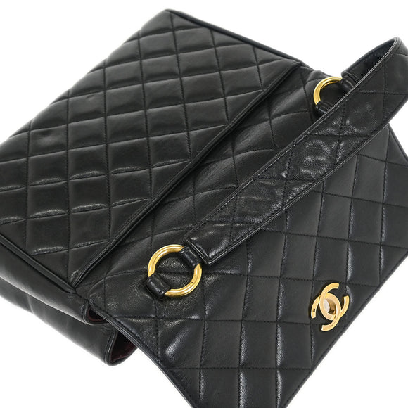 Chanel Black Lambskin Straight Flap Handbag