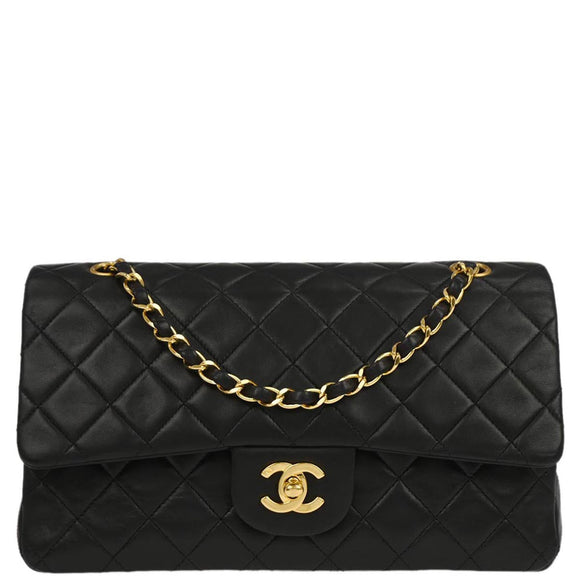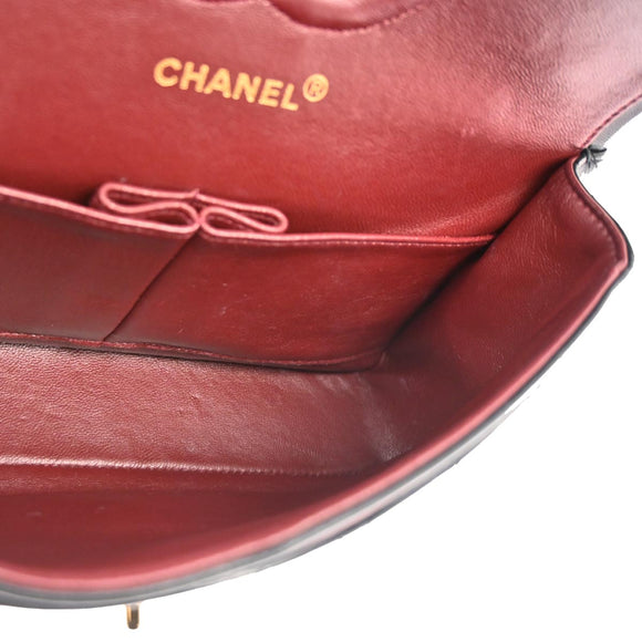 Chanel 1989-1991 Black Lambskin Medium Classic Double Flap Shoulder Bag