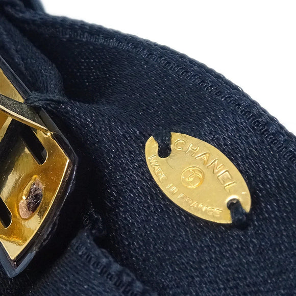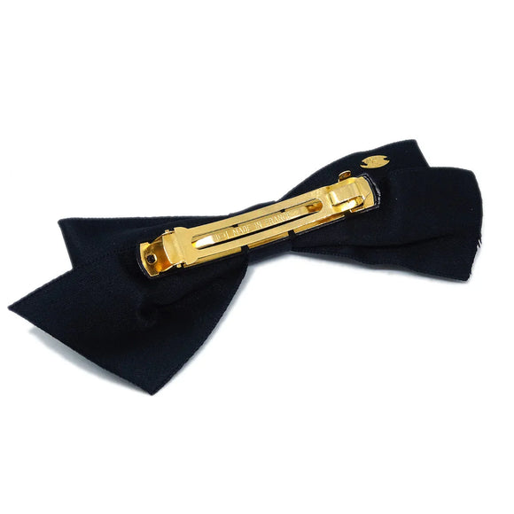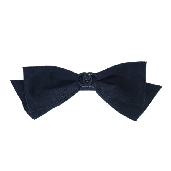 Chanel Turnlock Bow Satin Hair Barrette Black