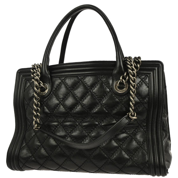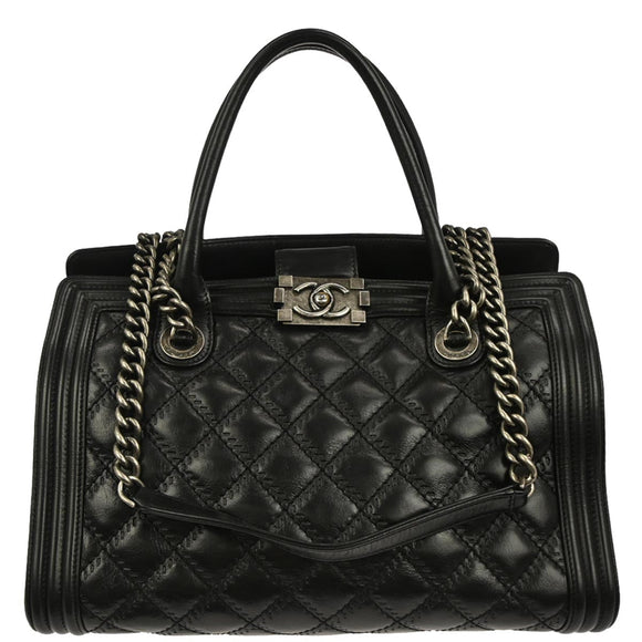 Boy Chanel Black Calfskin Double Stitch ShoulderTote Bag