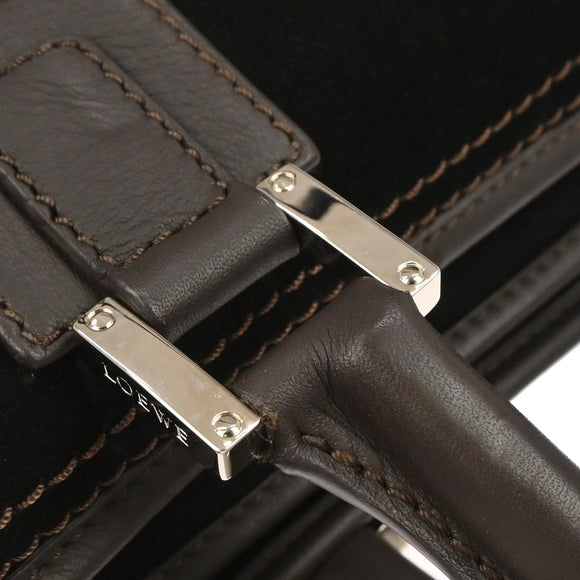 Loewe Black Suede Briefcase 2way Shoulder Handbag
