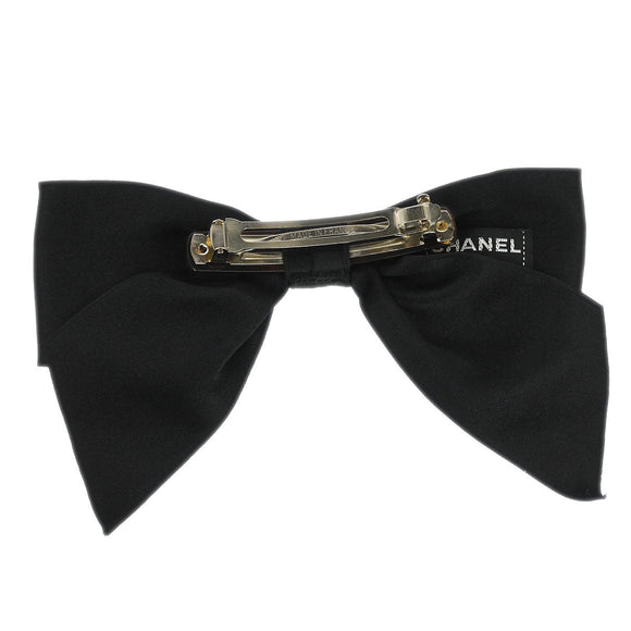 Chanel Bow Satin Barrette Hair Accessories Black