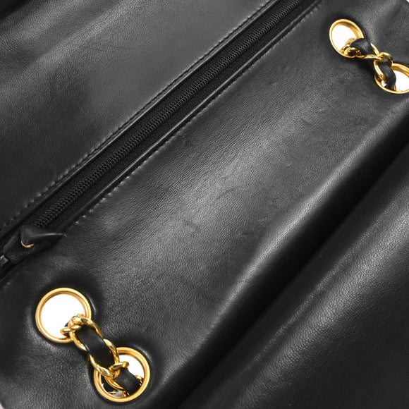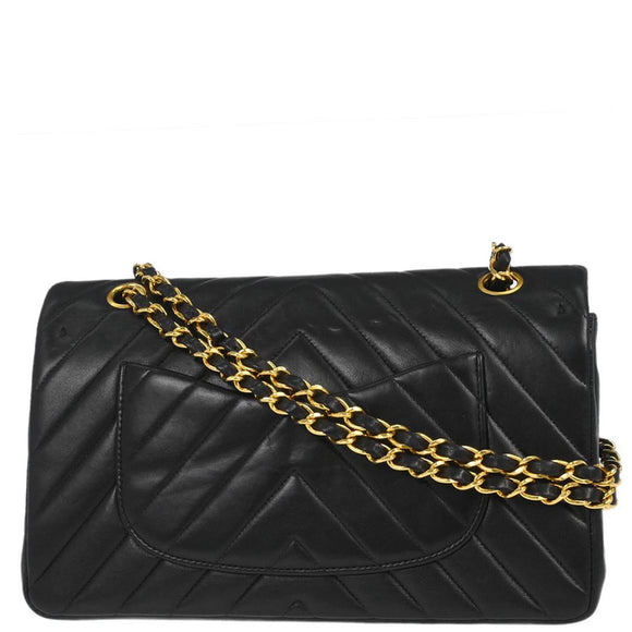 Chanel 1991-1994 Black Lambskin Chevron Medium Classic Double Flap Shoulder Bag