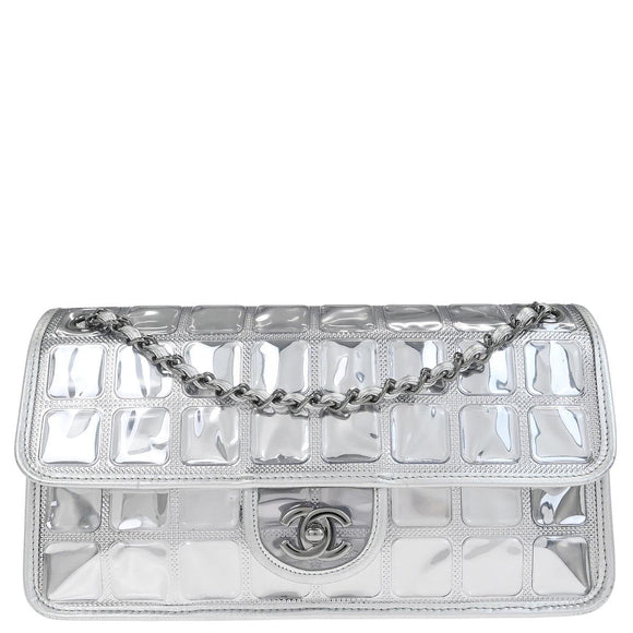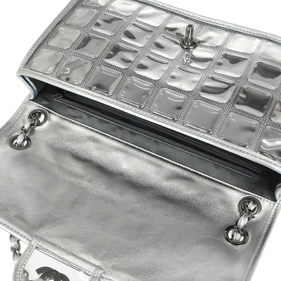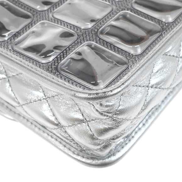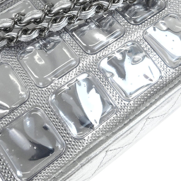 Chanel Silver PVC Lambskin Ice Cube Jumbo Shoulder Bag