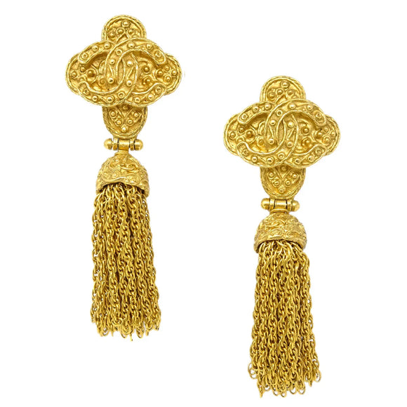 Chanel Fringe Charm Dangle Earrings Clip-On Gold 94A