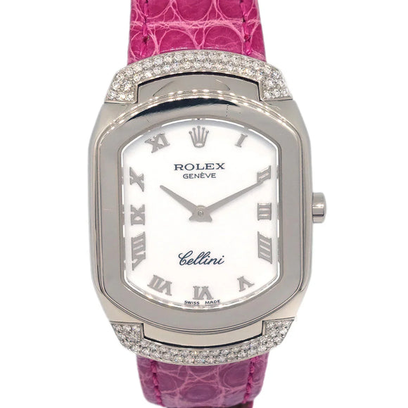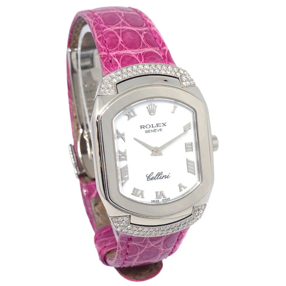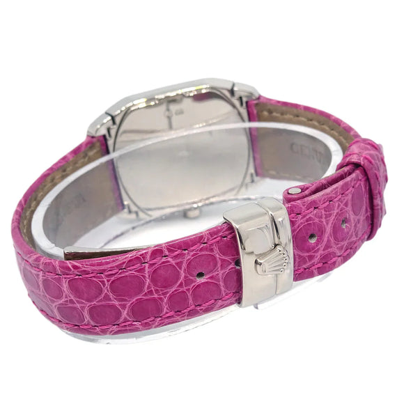 Rolex* Cellini Ref.6692 Quartz Watch 18KWG Diamond Pink Crocodile