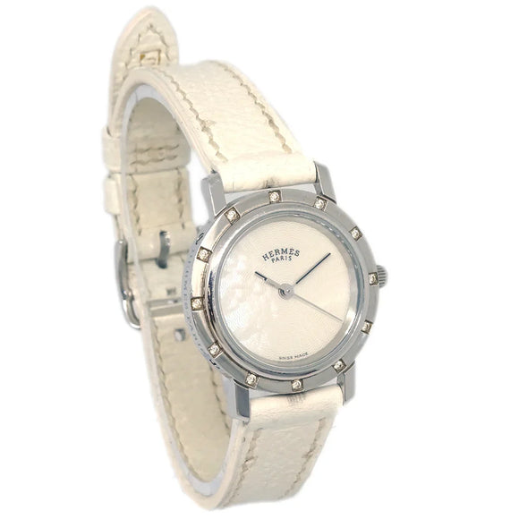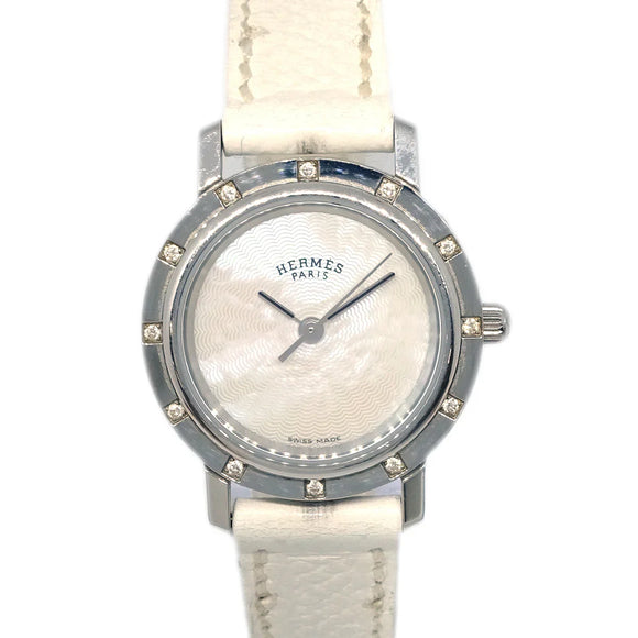 Hermes CL4.230 Clipper Nacre Quartz Watch SS White