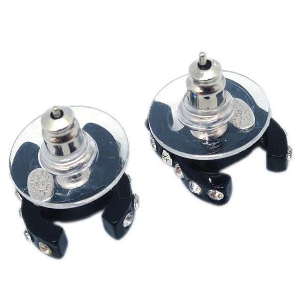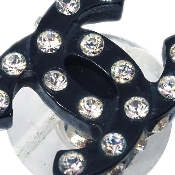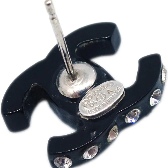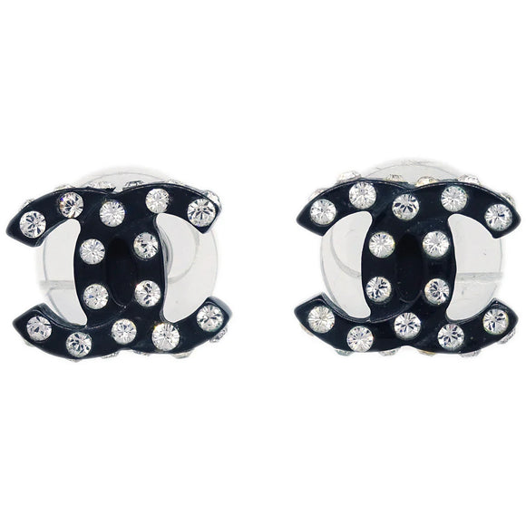 Chanel CC Piercing Earrings Rhinestone Black 04A