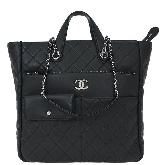 Chanel 2019 Black Lambskin Ultra Pocket Shopping Tote 2way Shoulder Handbag
