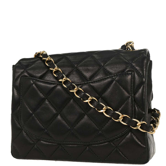 Chanel 2003-2004 Black Lambskin Mini Classic Square Flap Shoulder Bag