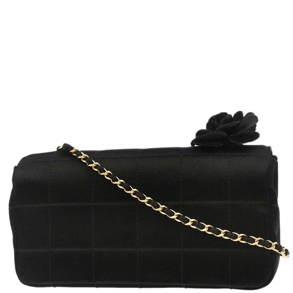 Chanel 2000-2002 Black Satin Camellia Choco Bar Shoulder Bag