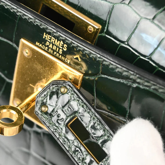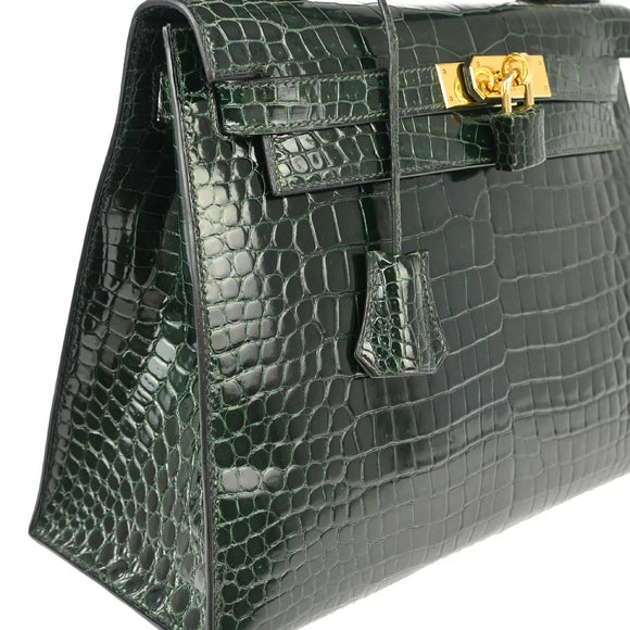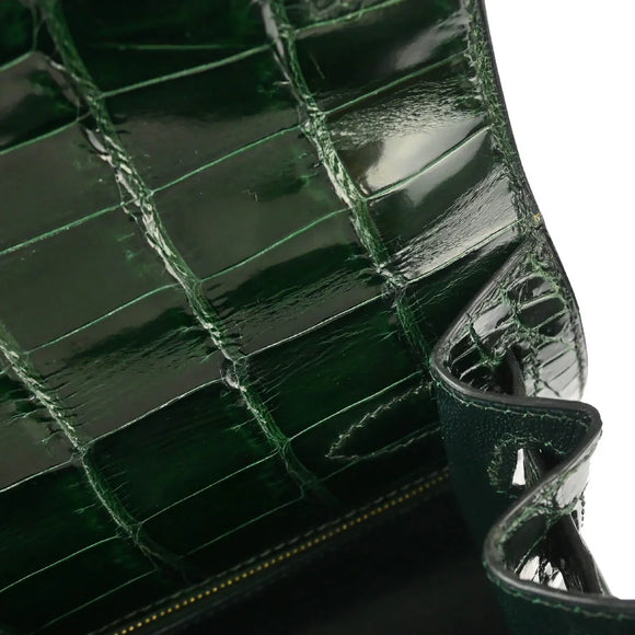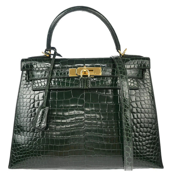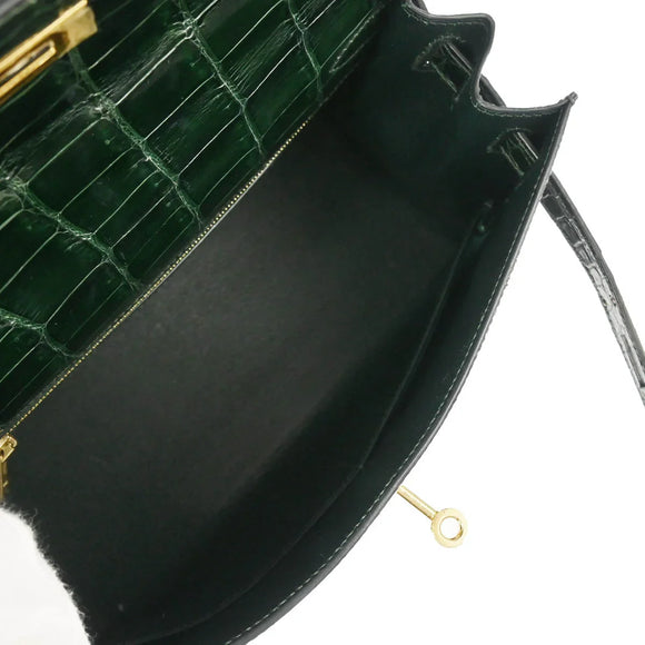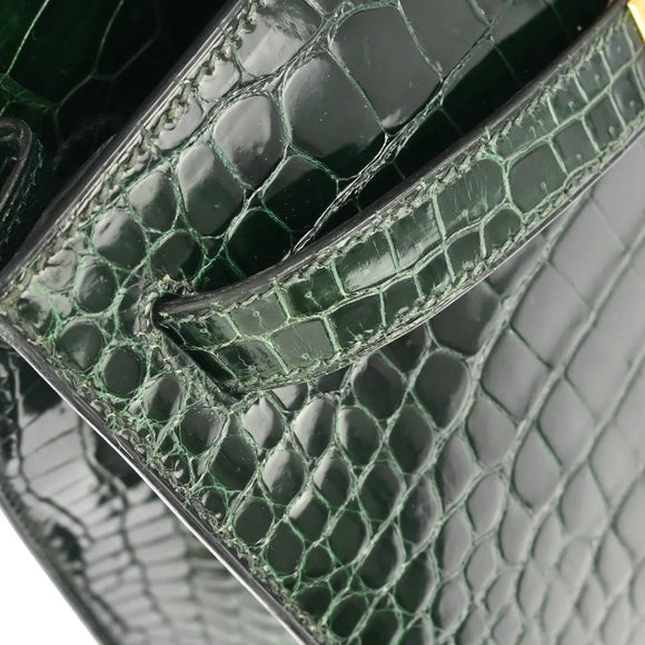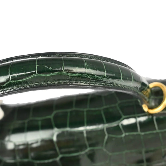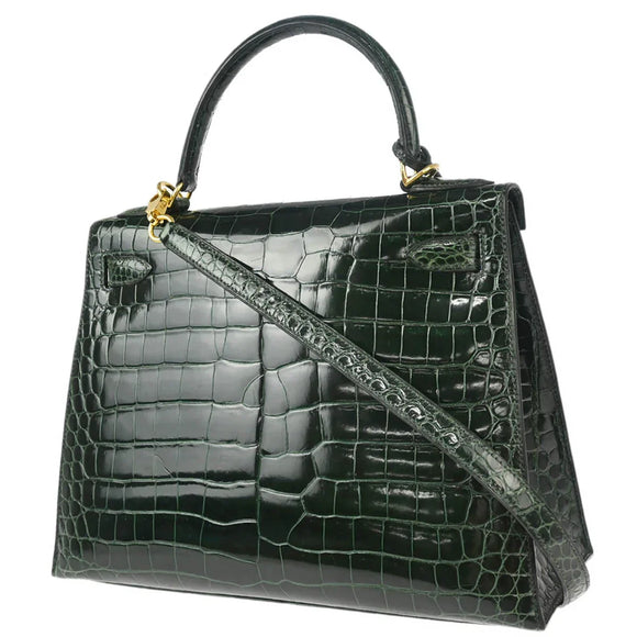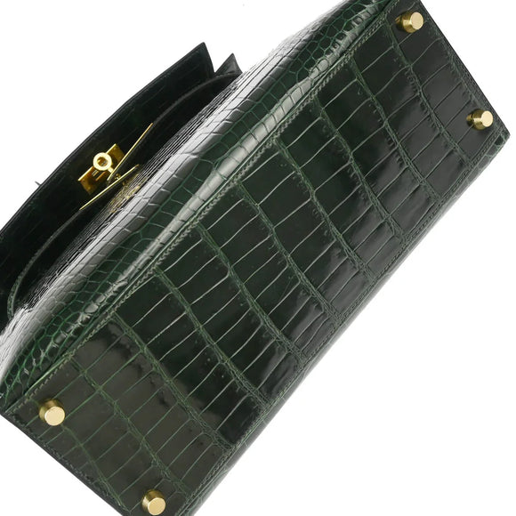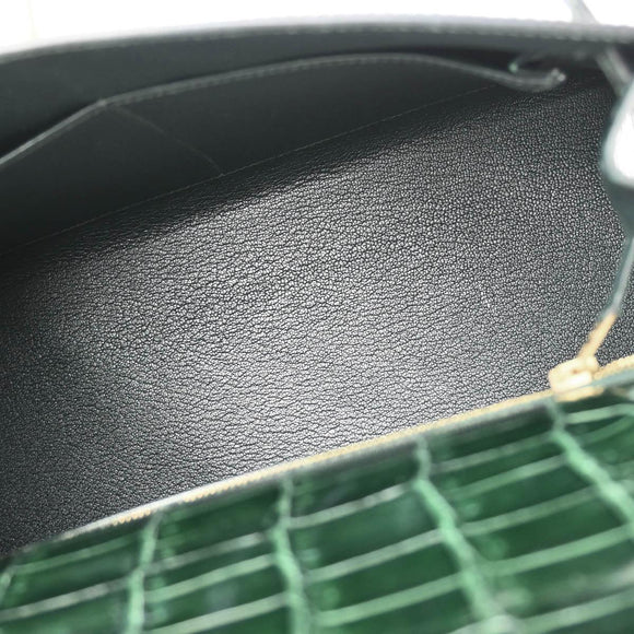 Hermes * 2001 Vert Fonce Crocodile Porosus Kelly 28 Sellier 2way Shoulder Handbag