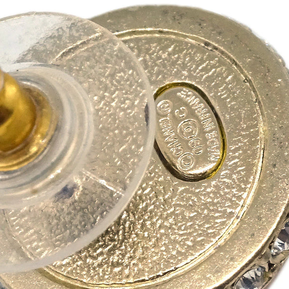 Chanel Button Piercing Earrings Rhinestone Pink 09C