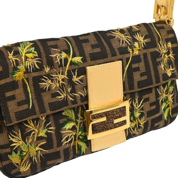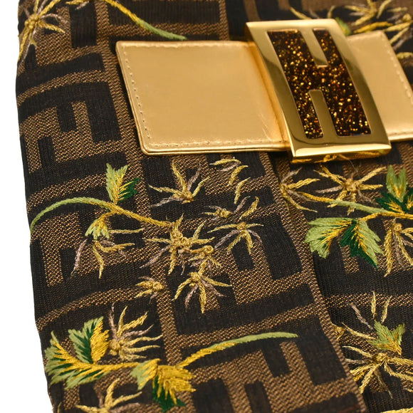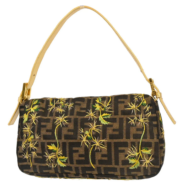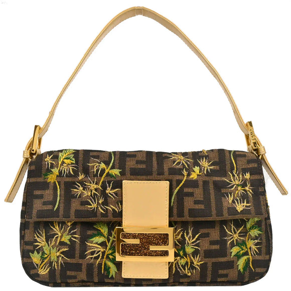 Fendi 2000 Gold Zucca Embroidered Baguette Handbag
