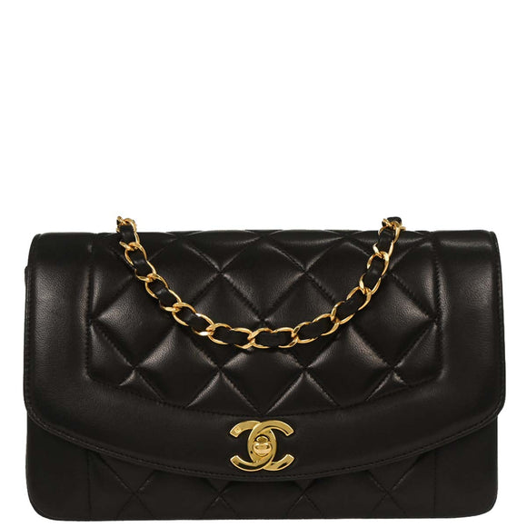 Chanel 1994-1996 Black Lambskin Small Diana Shoulder Bag