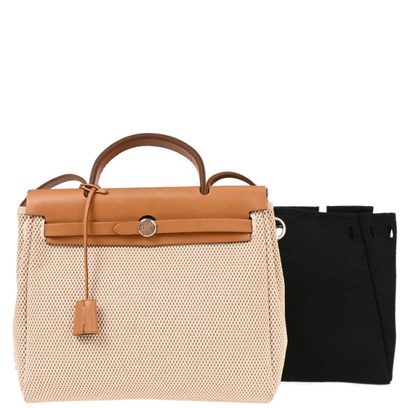 Hermes Beige Black Toile GM Officier Herbag PM 2 in 1 Handbag