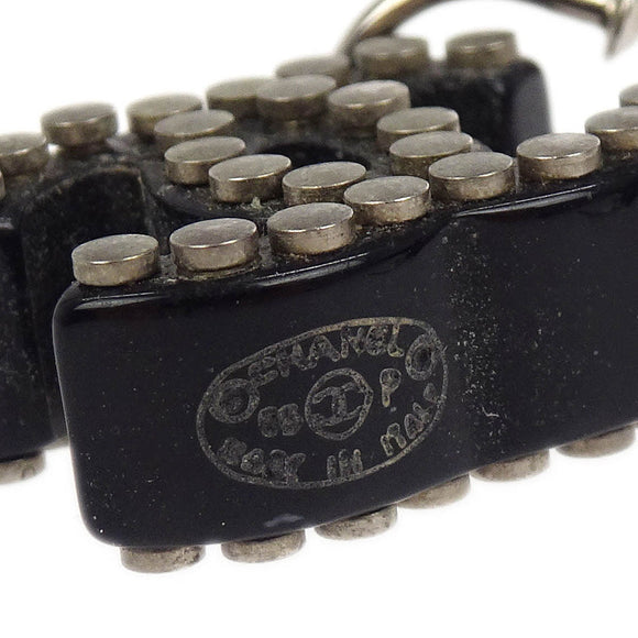 Chanel Piercing Dangle Earrings Silver Black 05P