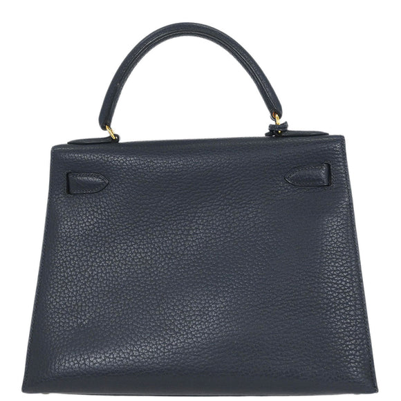 Hermes Blue Indigo Ardennes Kelly 28 Sellier Handbag