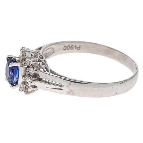 Ring Pt900 Silver Sapphire Diamond #52 Jewelry