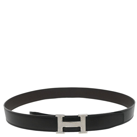 Hermes Black Box Calf Togo Constance Guilloche Reversible Belt #95