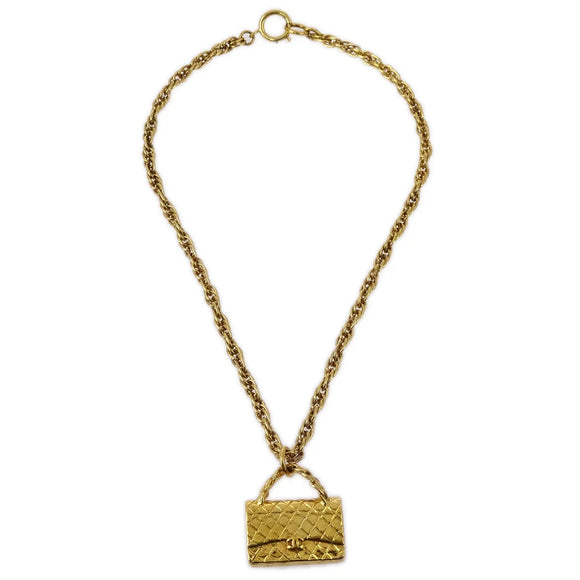 Chanel Bag Chain Pendant Necklace Gold 95P
