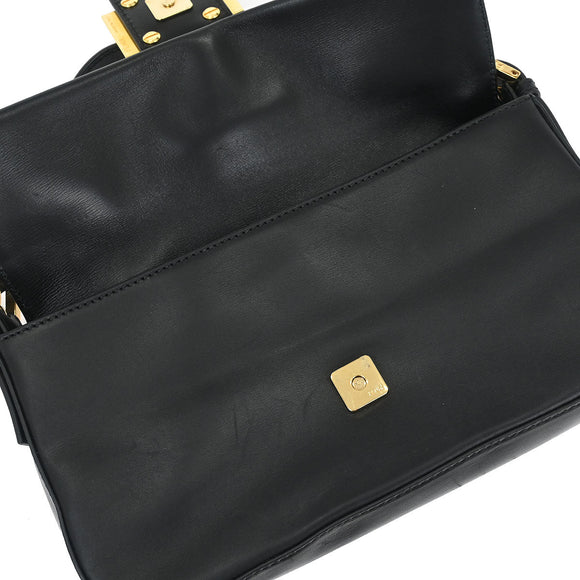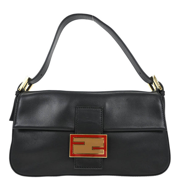Fendi Black Leather Baguette Handbag