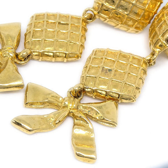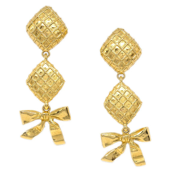 Chanel 1980s Dangle Bow Earrings Clip-On Gold