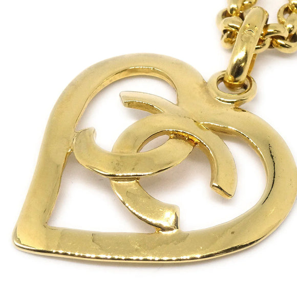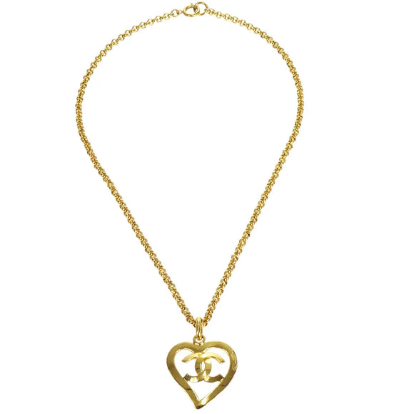 Chanel 1995 Gold CC Heart Cutout Pendant Necklace
