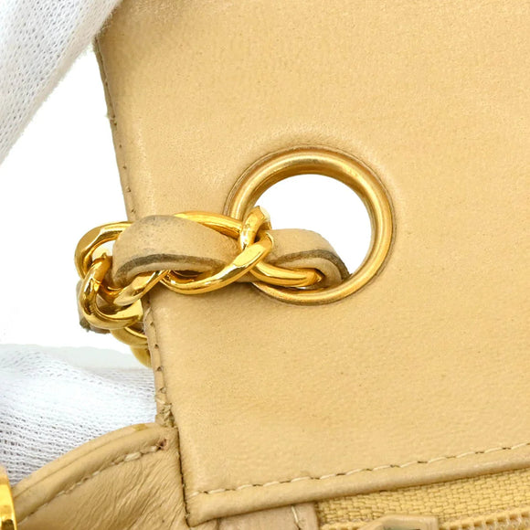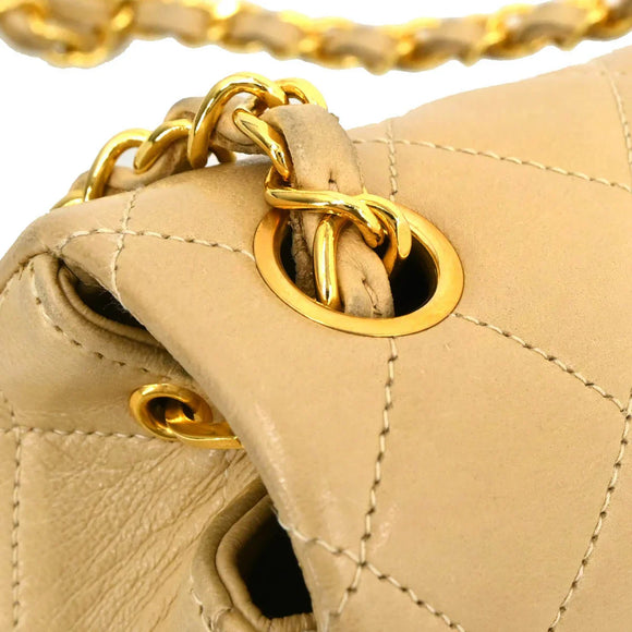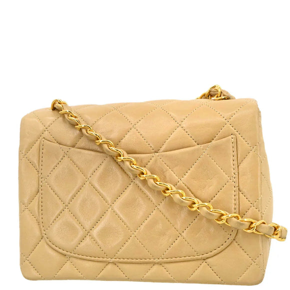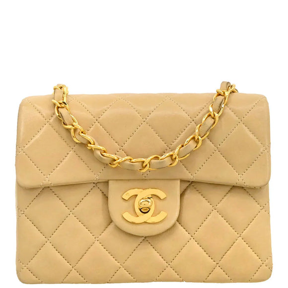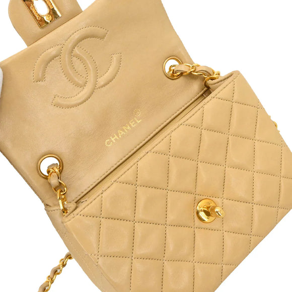 Chanel 1994-1996 Beige Lambskin Mini Classic Square Flap Shoulder Bag