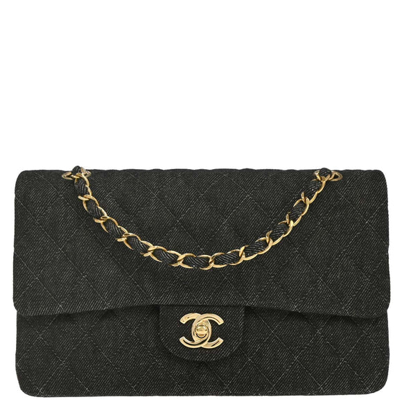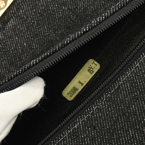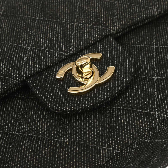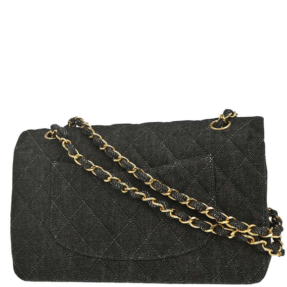 Chanel 1997-1999 Black Denim Medium Classic Double Flap Shoulder Bag