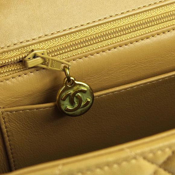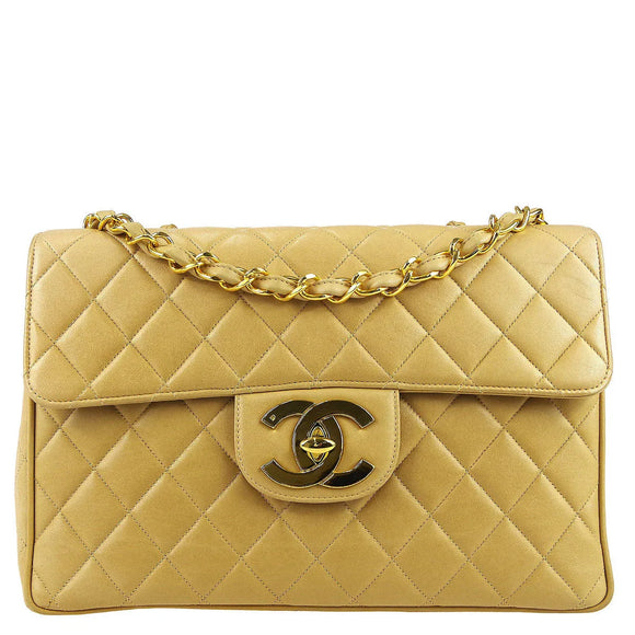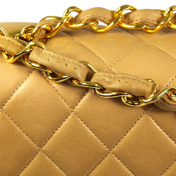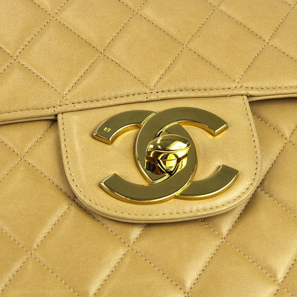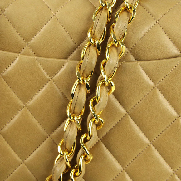 Chanel 1994-1996 * Classic Flap Jumbo Double Chain Shoulder Bag Beige Lambskin