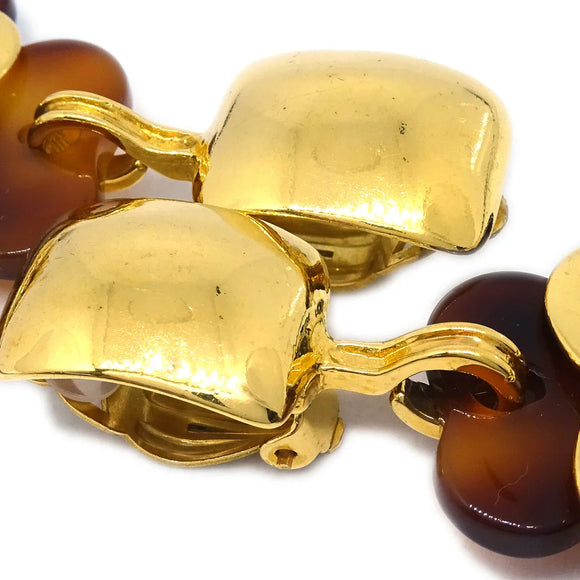 Chanel Clover Dangle Earrings Gold Clip-On 95P