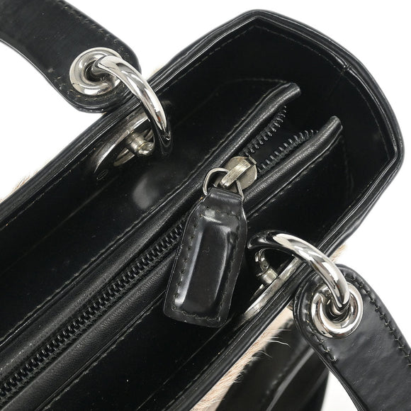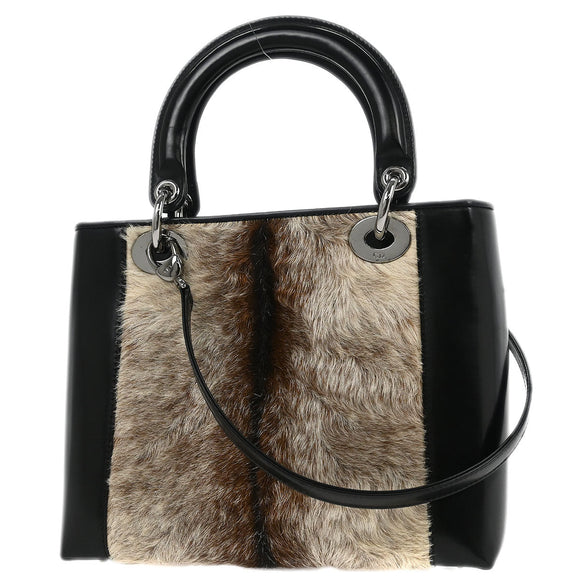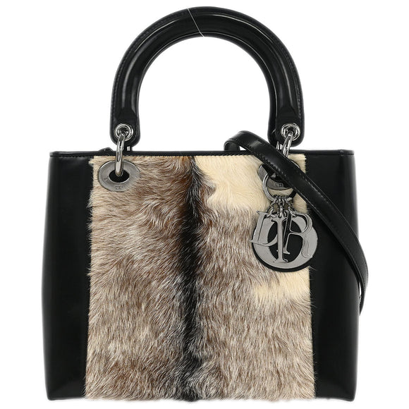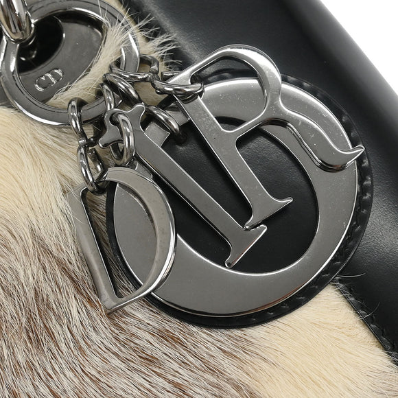 Christian Dior * Black Fur Medium Lady Dior 2way Shoulder Handbag