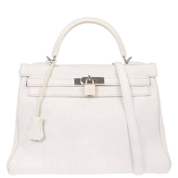 Hermes White Taurillon Clemence Kelly 32 Retourne 2way Shoulder Handbag