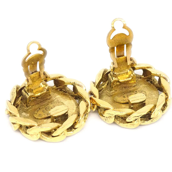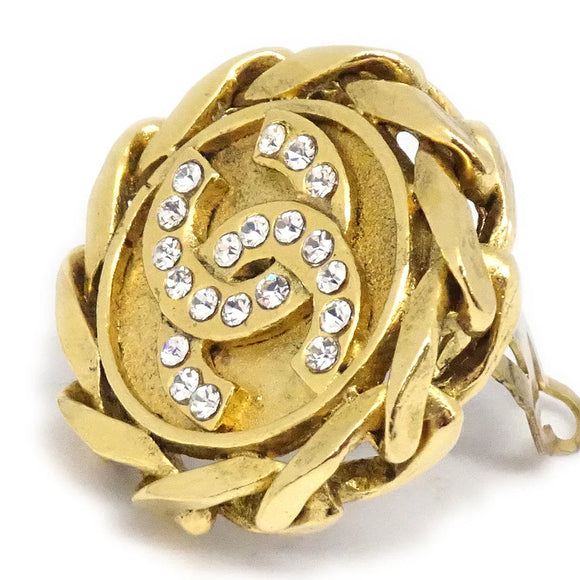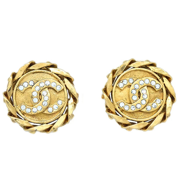 Chanel 1988 Crystal & Gold CC Earrings Clip-On