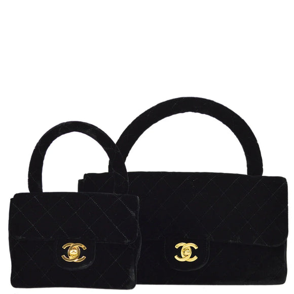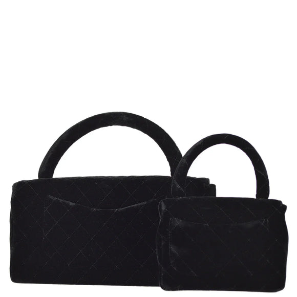 Chanel 1994-1996 Black Velvet Classic Single Flap 2 in 1 Handbag Set