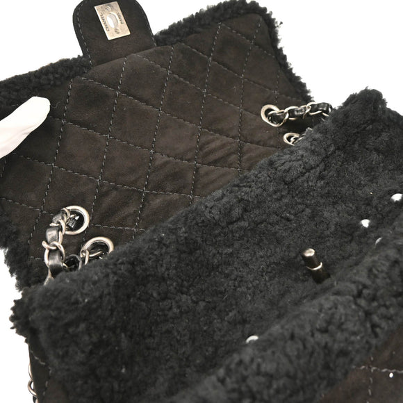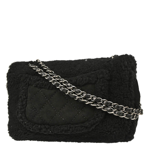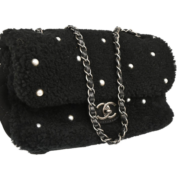 Chanel 2014-2015 Black Wool Costume Pearl Shoulder Bag