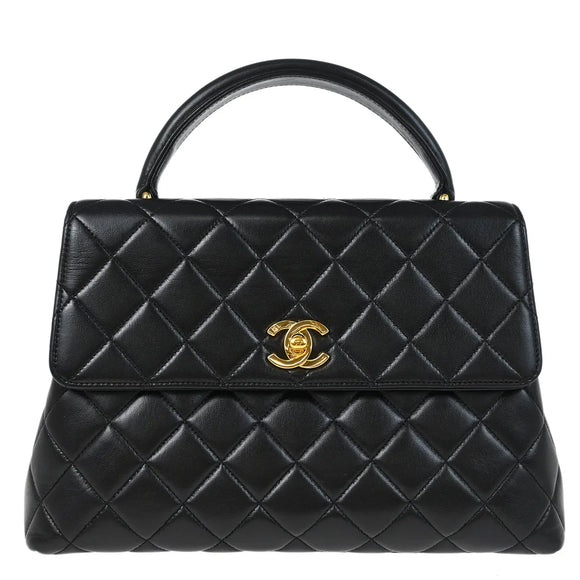 Chanel 1996-1997 Black Lambskin Top Handle Handbag