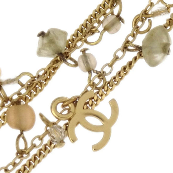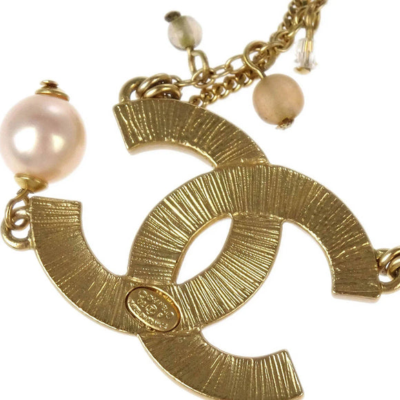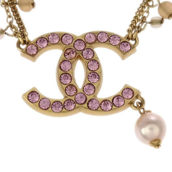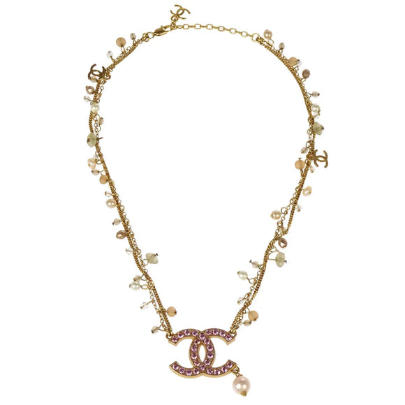 Chanel CC Chain Pendant Necklace Rhinestone Costume Pearl Gold 02P