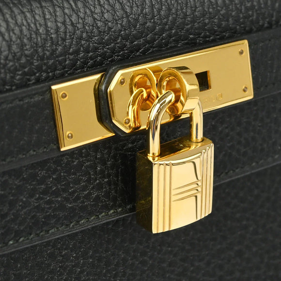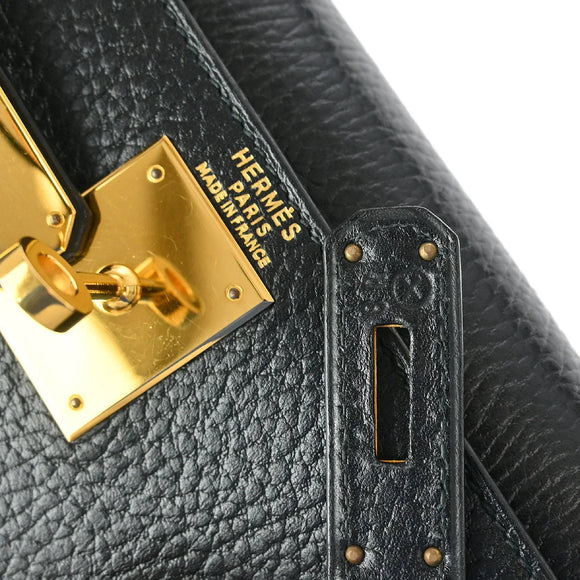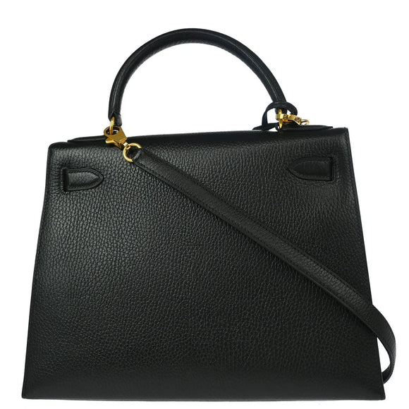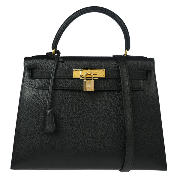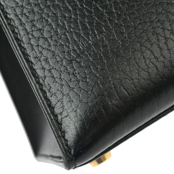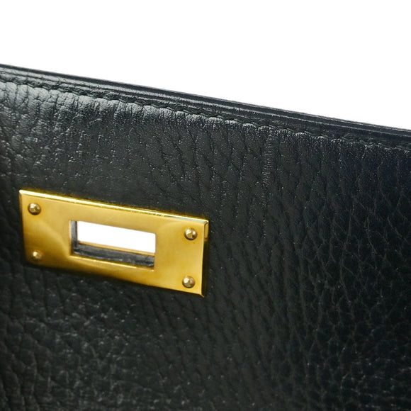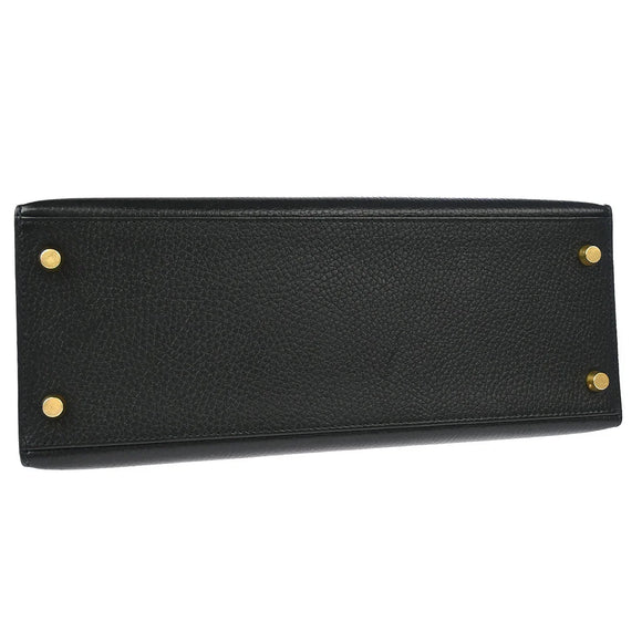 Hermes 1994 Black Ardennes Kelly 28 Sellier 2way Shoulder Handbag