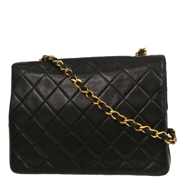 Chanel Black Lambskin Classic Square Flap Shoulder Bag