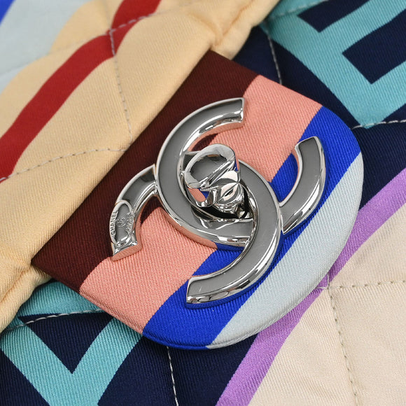 Chanel 2018 Light Blue Navy Satin XXL Quilted Printed Shoulder Bag