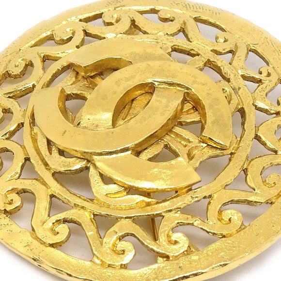 CHANEL 1995 Fretwork Paisley Brooch Gold