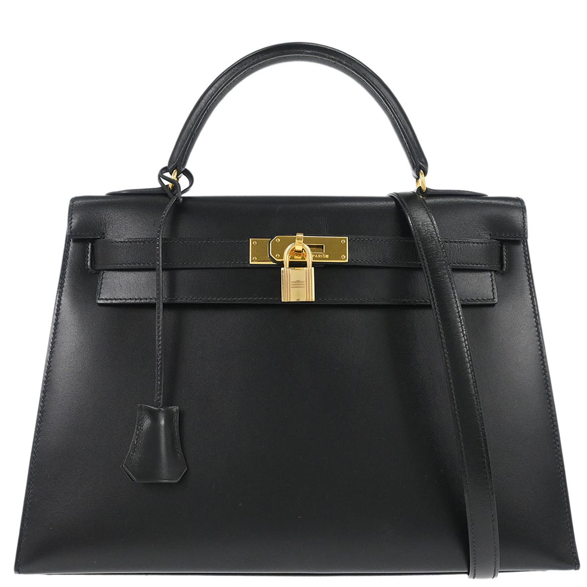 Hermes Black Box Calf Kelly 32 Sellier 2way Shoulder Handbag