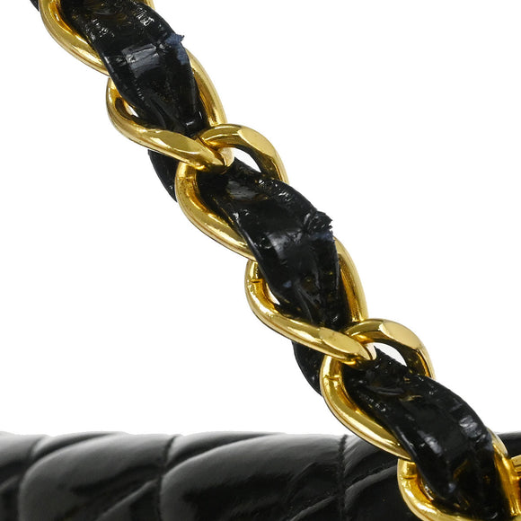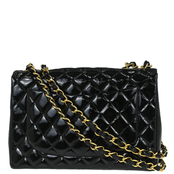 Chanel Black Patent Leather Jumbo Classic Flap Shoulder Bag