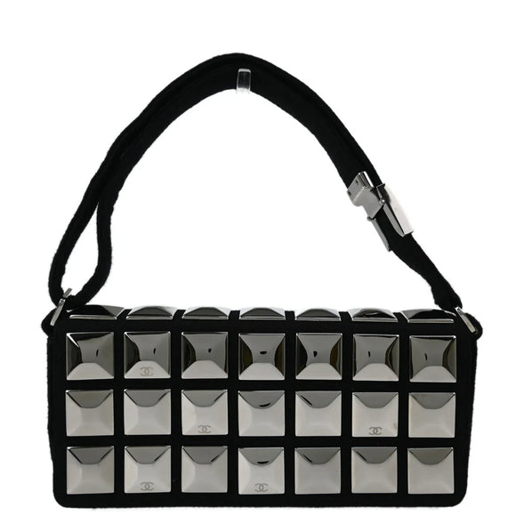 Chanel 2003-2004 Black Cotton Ice Cube Shoulder Bag