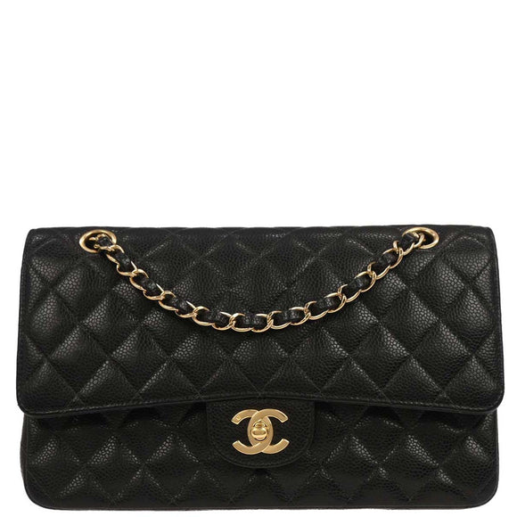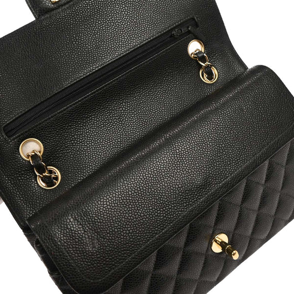 Chanel 2004-2005 Black Caviar Medium Classic Double Flap Shoulder Bag
